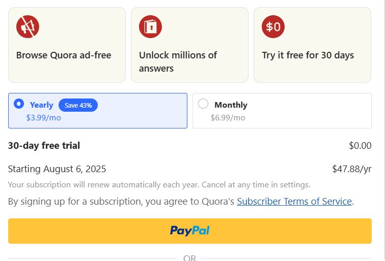 Quotra Monetization focuses on Quora+ and Space Subscriptions for creators. Quora+ is a subscription-based service. The Subscriber will pay subscription fees of $6.99/month or $47.88/year. In Quora, users can see all the content published there, but in Quora+, users need to pay a subscription fee, and only then can they see that content.
